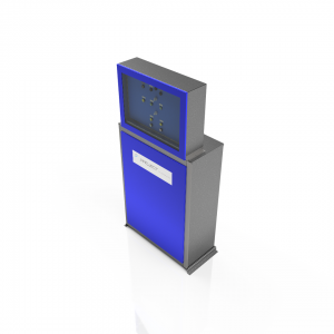 Quadro de comando do sistema de abastecimento de combustível, montado em caixa e botões de comando, permite a individualização dos tanques, incluindo o sistema de sensoriamento para a detecção de vazamentos.