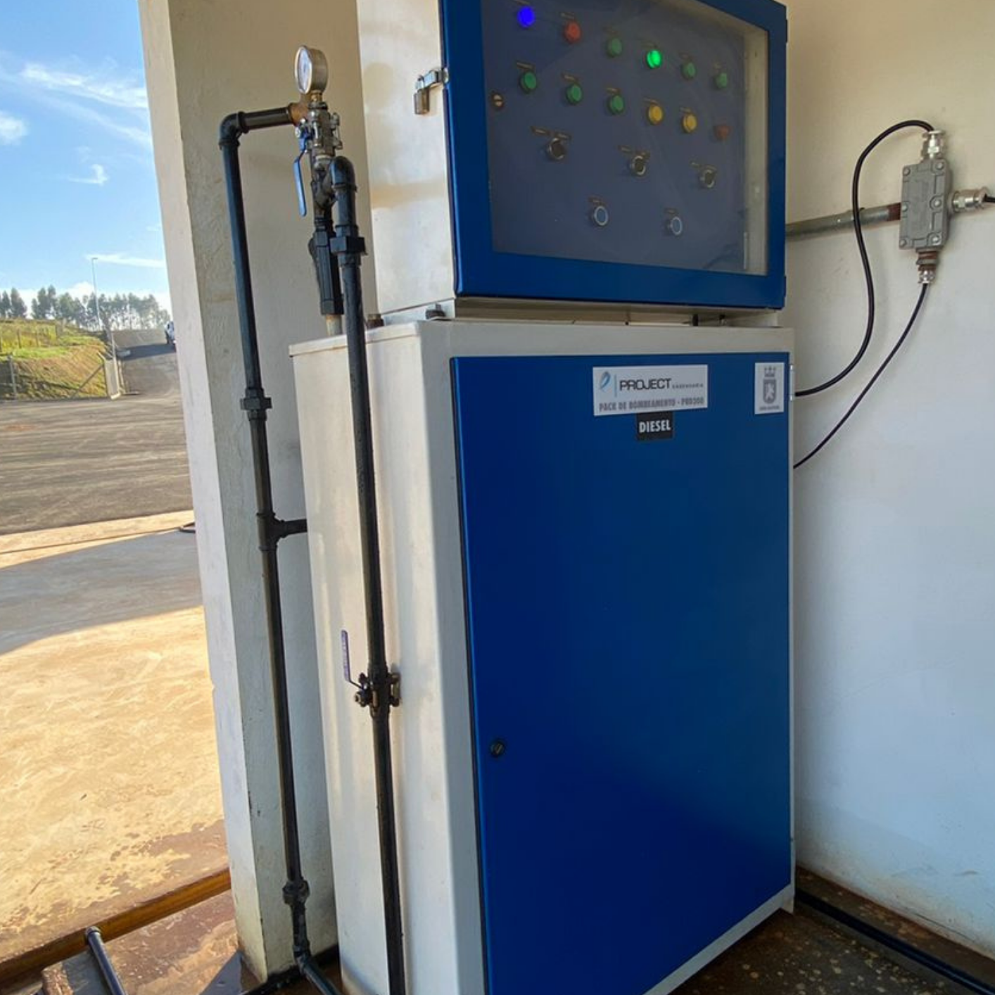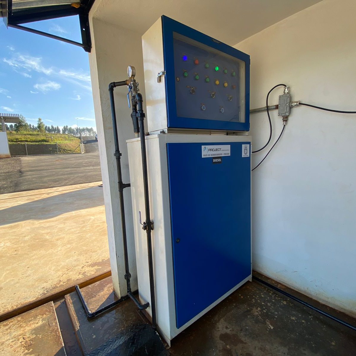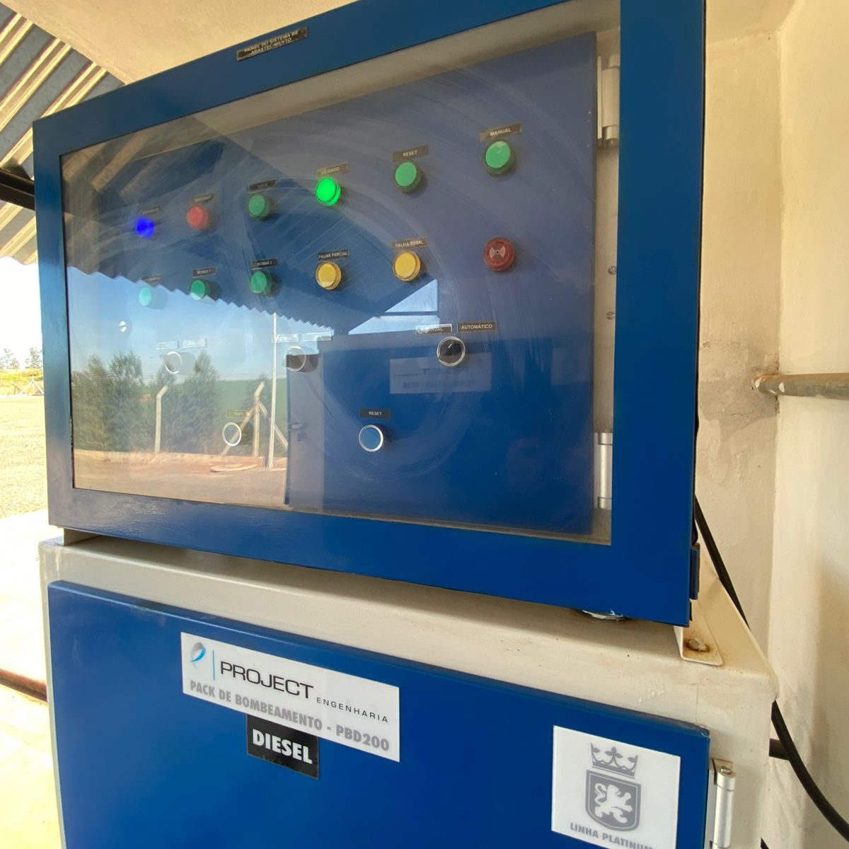 Possibilidade de integração completa do sistema de bombas, incluindo: entrada de óleo diesel, controles de abastecimento, moni-toramento e de nível do tanque e alarme externo sonoro luminoso.