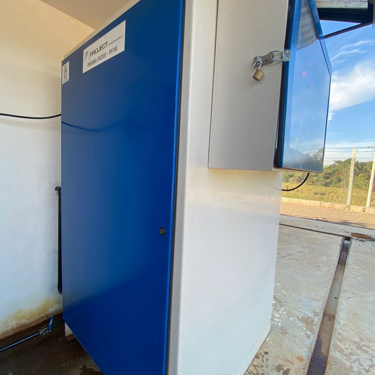 - Elementos de filtragem: Filtro malha 100, Pré-filtro 10 mícrons, Filtro final 5 mícrons, Filtro coalescente separador de água.